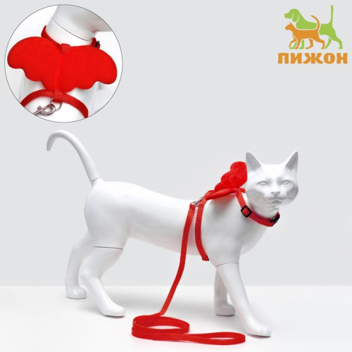Комплект для кошек Ангел рXS шлейка 19-26см + поводок 120*1см красный Пижон