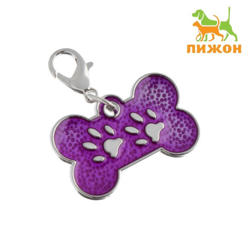 Адресник Косточка с лапками с карабином под гравировку 3см*1,5см фиолетовый Пижон