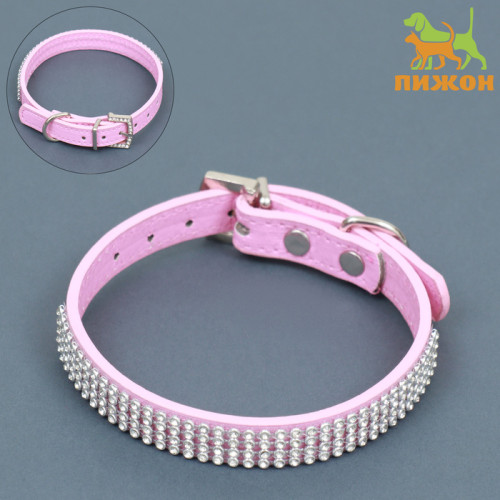 Ошейник со стразами 4 ряда 38*1,5см ОШ26-33 розовый Пижон