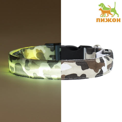 Ошейник с подсветкой "Милитари", 3 режима свечения, серыйРазмер: L, стропа 2,5 смОбхват шеи: 48-60 с..