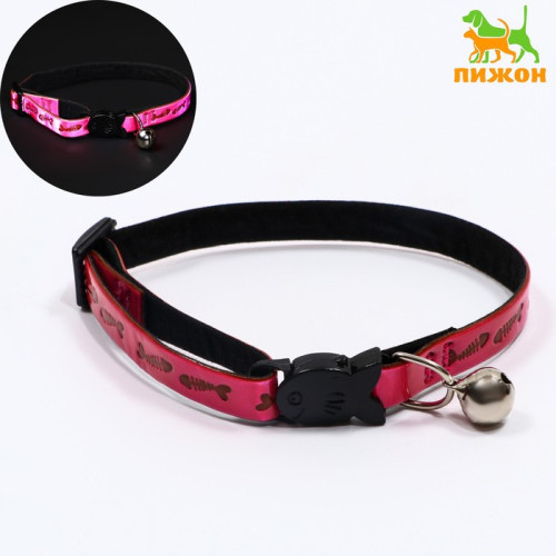 Ошейник для кошек Рыбки светоотражающий 30см*1см розовый Пижон