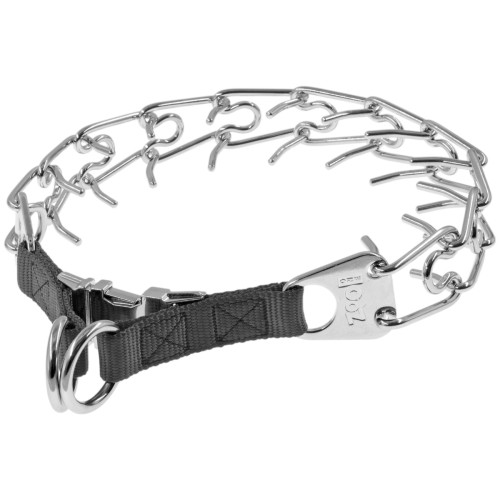 Предназначен для воспитания и подчинения собаки, а также сдерживания рвущихся собак средних и крупных пород. За счёт съёмных звеньев (11 шт.) размер ошейника можно уменьшать или увеличивать. Гладко отполированные зубья предохраняют шею собаки от повреждения.