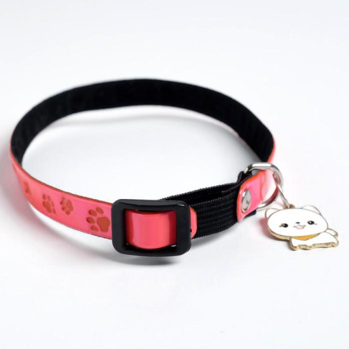Ошейник светоотражающий с подвесом Лапки розовый 29*1см