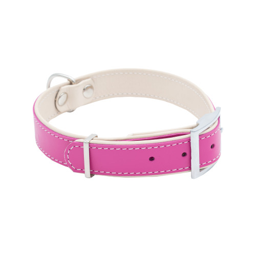 Ошейник кожаный BEST двойной с подворотом 25мм 36-46см фуксия Каскад