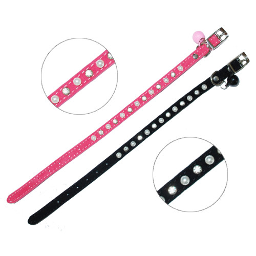 •  Ошейник велюровый двойной со стразами жемчугом и бубенчиком  1*31см Уют