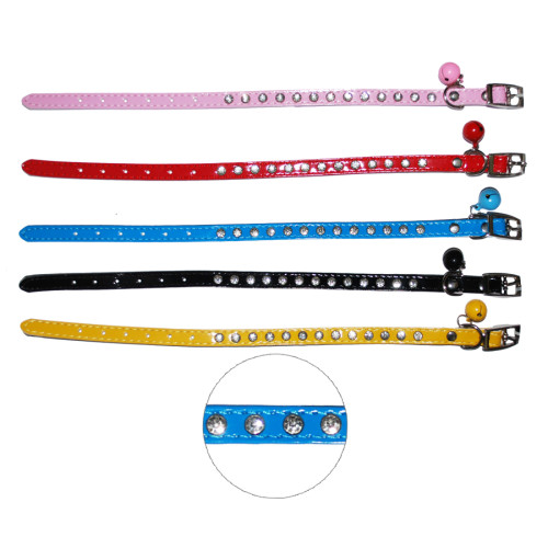 Ошейник двойной лак со стразами и бубенчиком 1*31см Уют