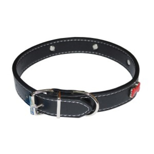 Ошейник кожаный прошитый укр косточки красная эмаль 2*50см Уют