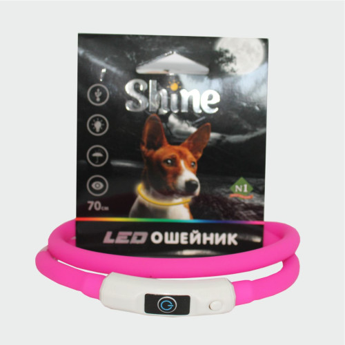 c Ошейник светящийся Лэд USB силиконовый розовый 1*70см Уют