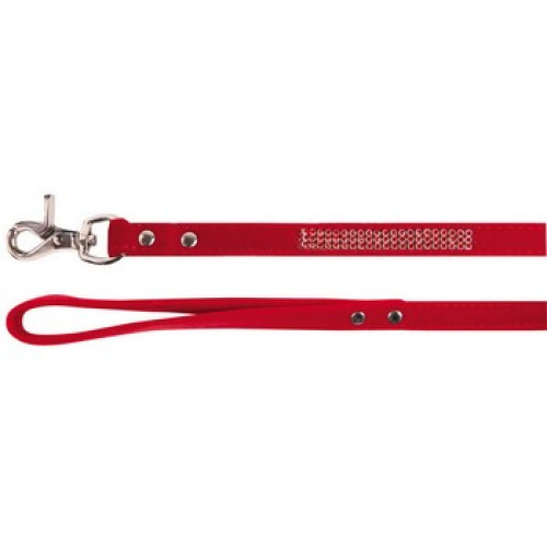 Поводок бархатный со стразами для собак 1,2м*10мм красный Dezzie