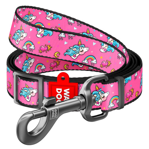 Поводок для собак нейлоновый регулируемый Единороги 25мм*152-183см WauDog CoLLaR