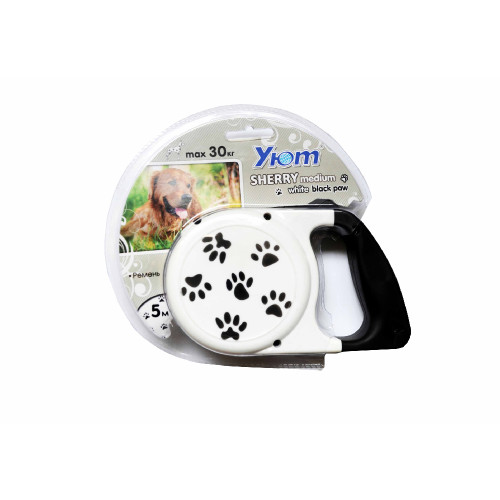 Рулетка Sherry ремень рM 5м 30кг белая с черными лапками Уют