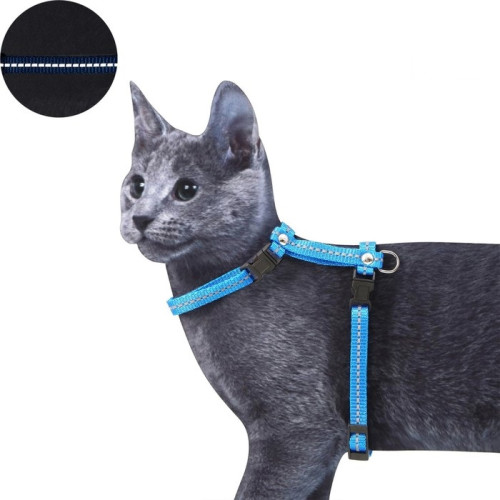 Шлейка для кошек светоотражающая ОШ 16,5-27см ОГ 21-35см ширина 1см синий Пижон