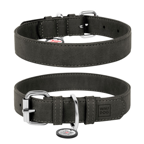 Ошейник для собак из искусственной кожи WAUDOG Eco с QR паспортом 20мм*30-39см серый