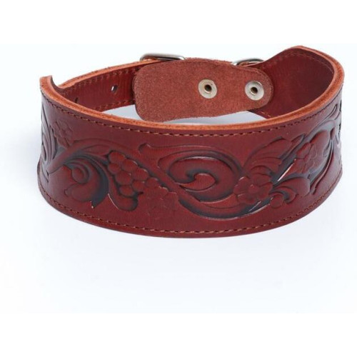 Ошейник кожаный двойной с тиснением Виноград ширина 2-5см длина 41-53см коричневый