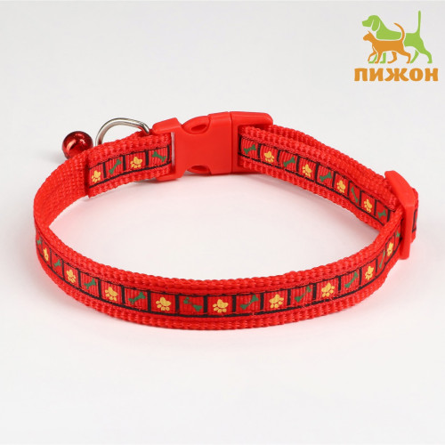 Ошейник для собак Лапка и кость с бубенчиком 1,5см*30см красный Пижон
