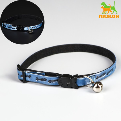 Ошейник для кошек светоотражающий Рыбки 30*1см голубой Пижон