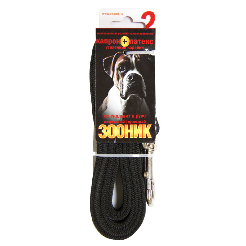 Поводок капроновый с латексной нитью 2м*25мм с усиленным карабином черный Зооник