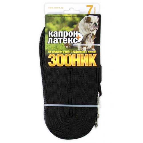 c Поводок капроновый с двойной латексной нитью 7м* 20мм Черный 05 Зооник