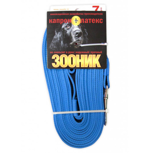 Поводок капроновый с латексной нитью 7м*20мм синий Зооник