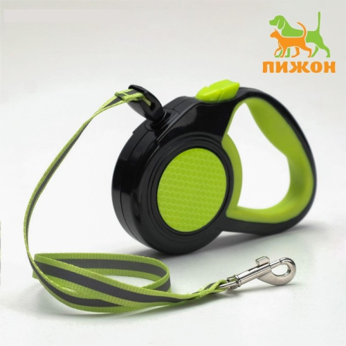 Рулетка для собак Пижон трос светоотражающая 3м до 15кг трос прорезиненная ручка зеленая Пижон