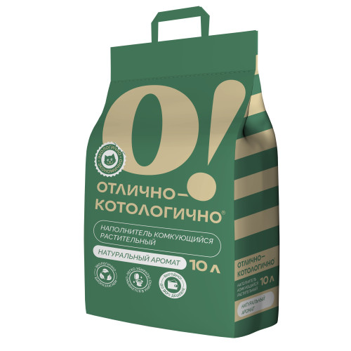 Наполнитель растительный комкующийся О!Отлично-котологично 10л смывается в унитаз