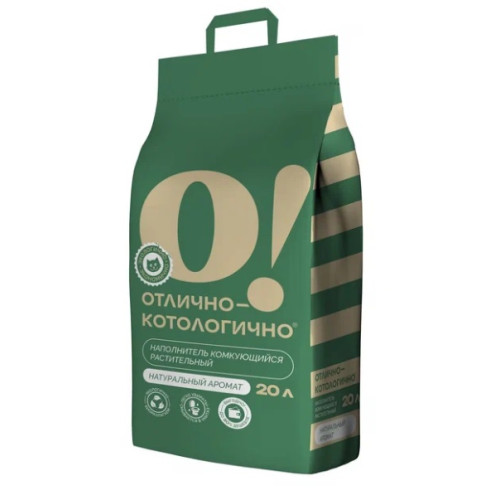 Наполнитель растительный комкующийся О!Отлично-котологично 20л смывается в унитаз