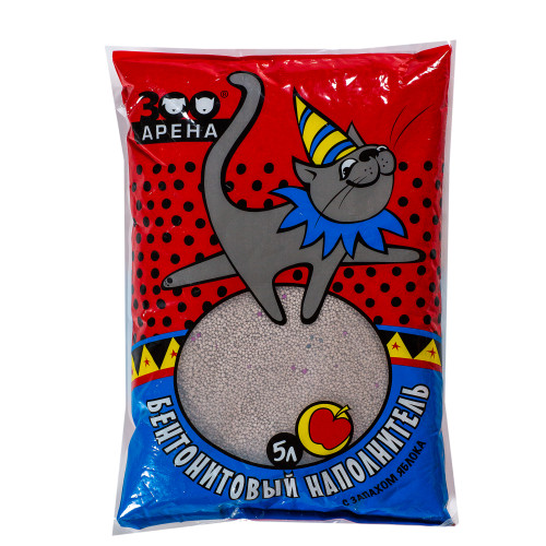 Наполнитель бентонитовый комкующийся ЗооАрена яблоко 5л/4кг*4