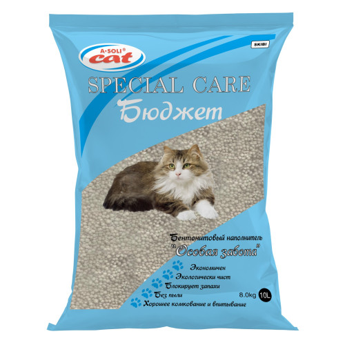 Наполнитель бентонитовый комкующийся А-Соли/A-Soli Особая Забота Бюджет 10л/8кг*2