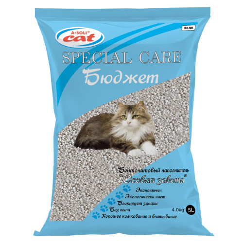 Наполнитель бентонитовый комкующийся А-Соли/A-Soli Особая Забота Бюджет 5л/4кг*2