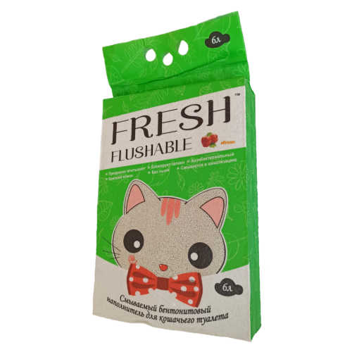 Наполнитель бентонитовый комкующийся Фрэш/Fresh Свежесть яблоко 6л/5кг Смываемый в туалет*4