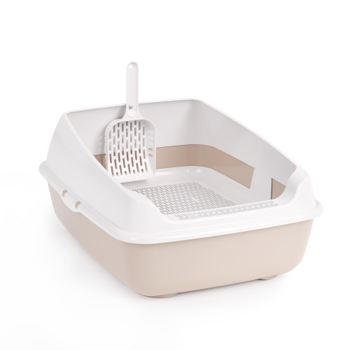 Туалет для кошек с высоким бортом сеткой и совком 50,5*39*23,5 см бежевый Альтернатива