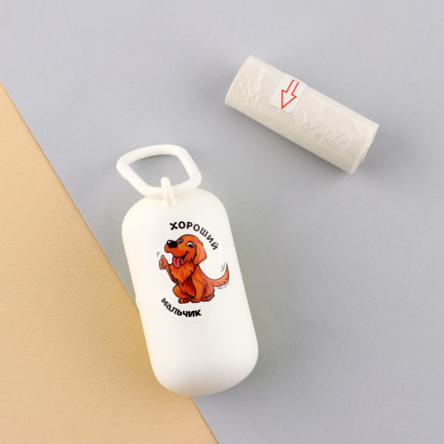 Контейнер с пакетами для уборки Хороший мальчик 8,4*4,3*4,3см белый