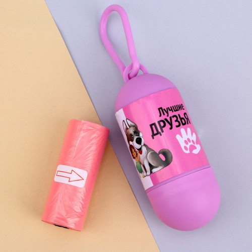 Контейнер с пакетами для уборки Лучшие друзья рулон 15шт Пижон
