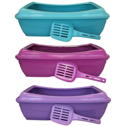 Туалет для кошек Атонго с бортиком с совком 49*37,5*15см серый Уют