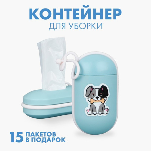 Контейнер с пакетами для уборки за собаками На прогулке голубой Пушистое счастье