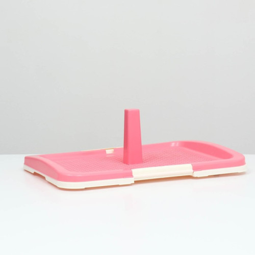 Туалет для собак с сеткой и столбиком 47*34*5,5см розовый Пижон