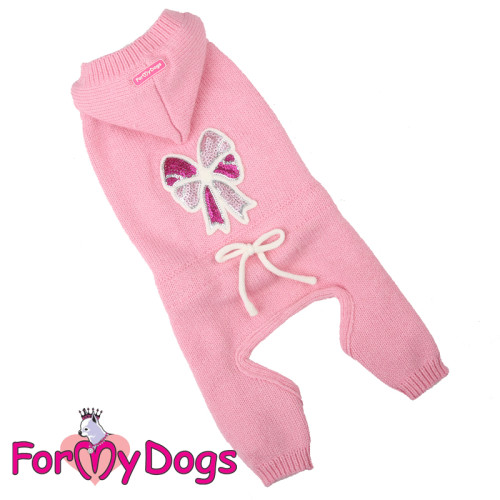 Костюм вязаный для собак р22, спинка 42см Бантик, с капюшоном розовый Formydogs