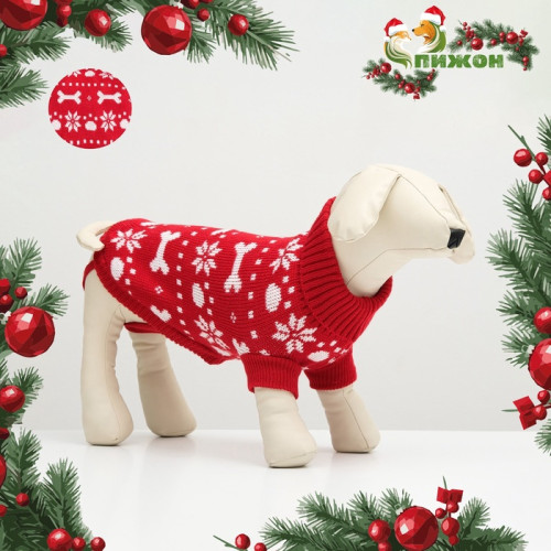 Свитер для собак Косточки-снежинки р12 ДС28-31см ОШ20-24см ОГ32-40см красный Пижон