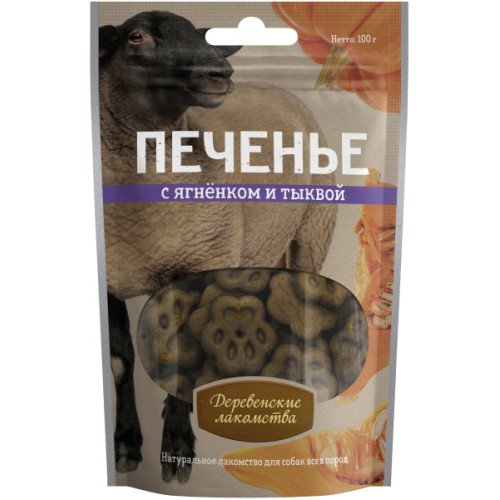 Деревенские Лакомства для собак Печенье с ягненком и тыквой 100гр*10
