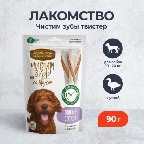Деревенские Лакомства для собак Чистим зубы Твистер с уткой 90гр*10