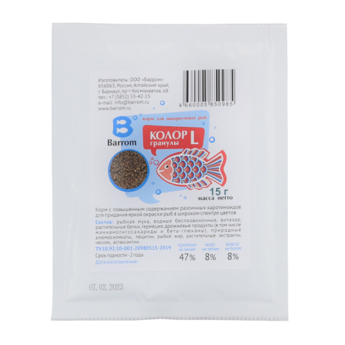 Колор/KOLOR L корм для рыб для усиления окраса гранулы 0,8-1,2мм 15гр