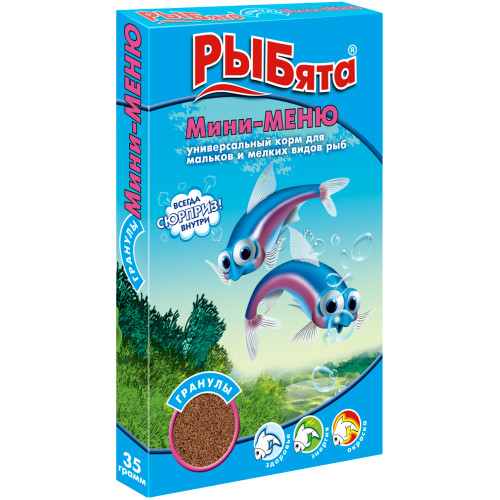 Рыбята Меню Мини универсальный корм для мальков и мелких видов рыб 35гр + сюрприз