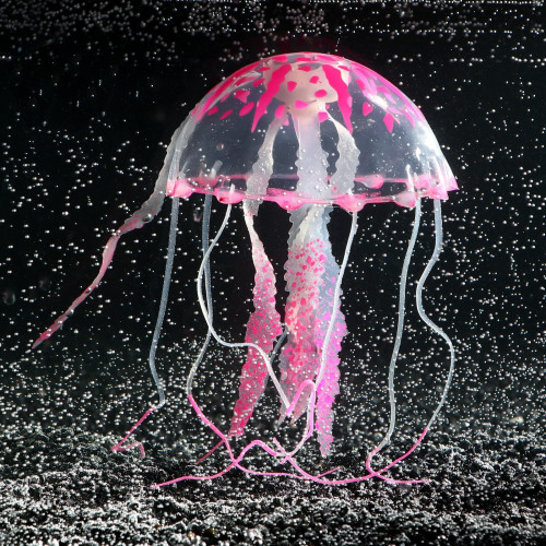 Декорация для аквариума Медуза силиконовая флуорисцентная 10*10*20,5см розовая