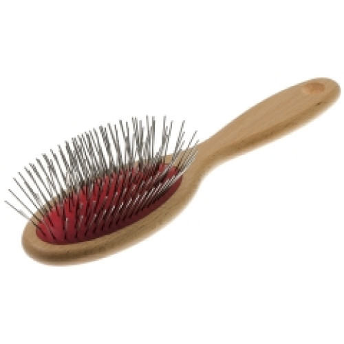 Щетка овальная одност. проф. на дерев. основ, супер мягкий корд (зуб 2,2см) красная Пет Лайн