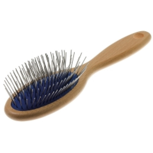 Щетка овальная одност. проф. на дерев. основ, супер мягкий корд (зуб 2,2см) синяя Пет Лайн