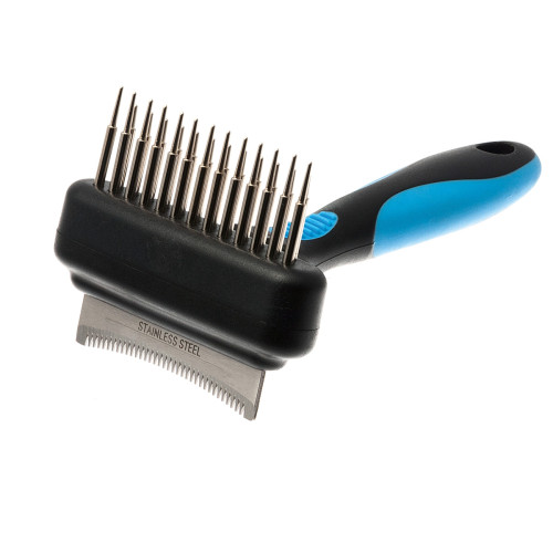 Расческа-грабли с дешеддером состоит из двух частей - расческа грабли для животных удаляет старую ше..