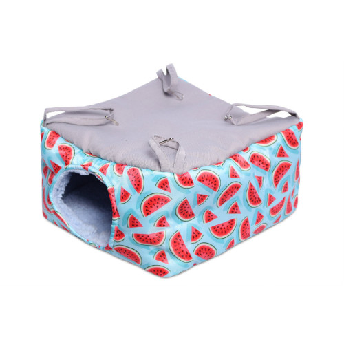 Данный домик станет просторной норкой для вашего питомца. Домик-гамак выполнен из высокопрочной ткани- оксворд. Внутри отделан искусственным мехом. Подвешивается за стенки клетки.