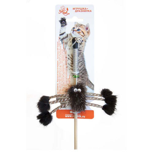 c Игрушка для кошек дразнилка Норковый паук на веревке 50см Зооник