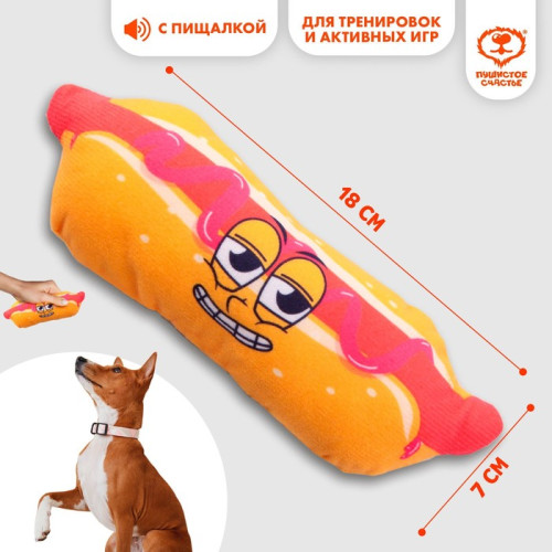 Игрушка для собак ХотДог с пищалкой текстиль 18см*7см Пушистое счастье