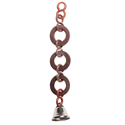 Игрушка для птиц - подвеска с деревянными кольцами и колокольчиком. Цвет: темное дерево, светлое дер..